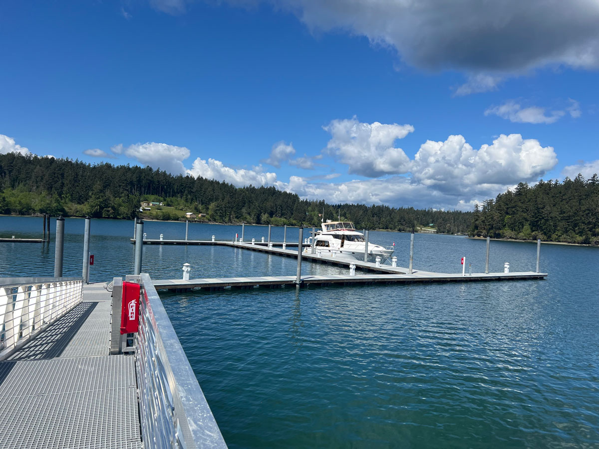 Limited or no water at Oro Bay. 30-amp power on docks. Outhouses on shore, hand washing station during summer months. 2-Horse shoe pits. Fire wood provided for fire place and fire pit. Gas BBQ located in storage building. Garbage dumpsters at top of lot.